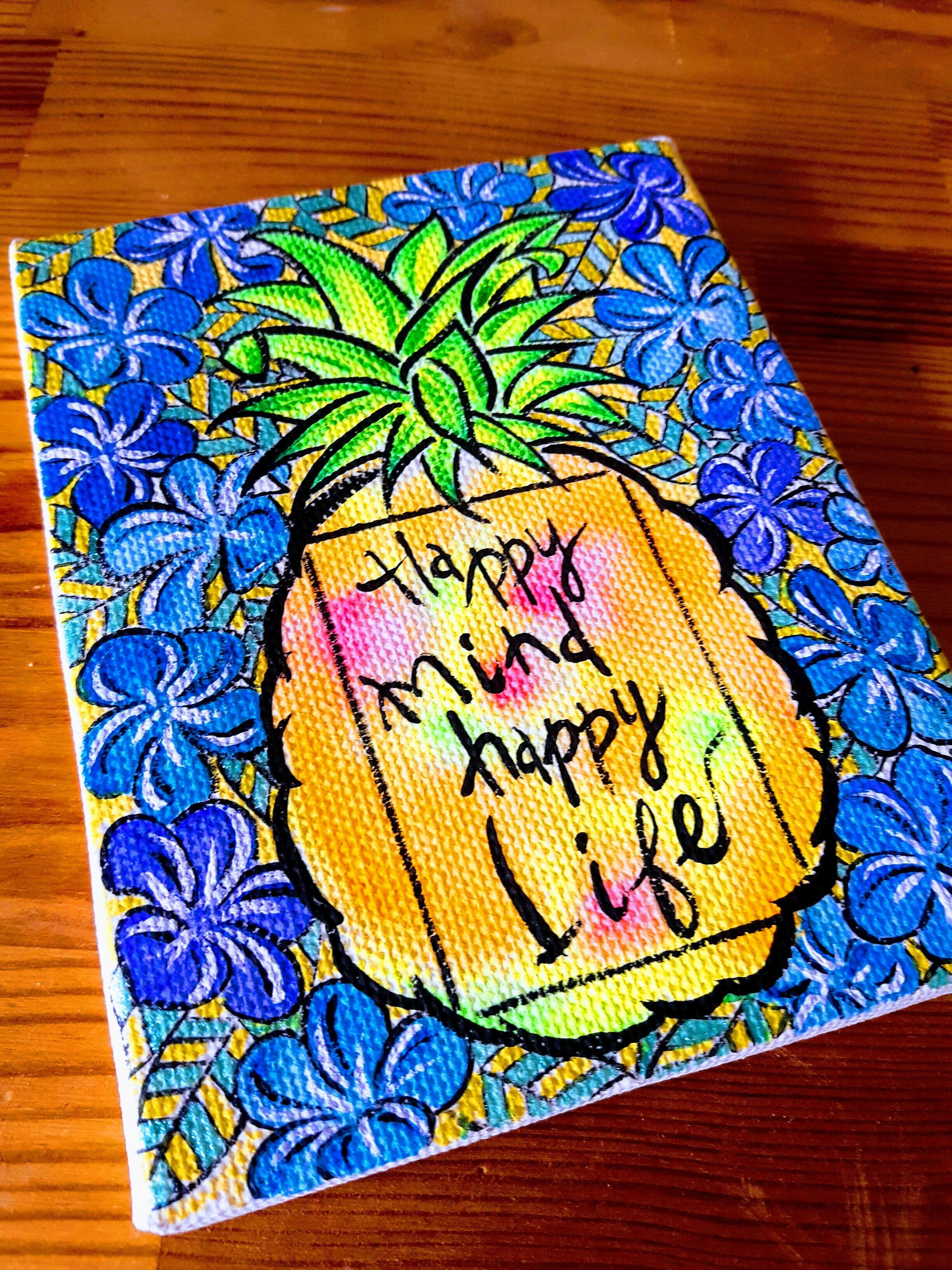 ハワイアンアート パイナップル&プルメリア イーゼル付